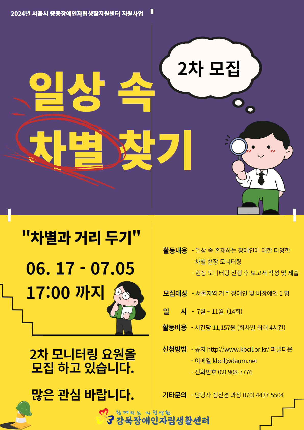 [모집] 2024년 일상 속 차별 찾기 '차별과 거리두기' 모니터링 요원을 2차 모집합니다.