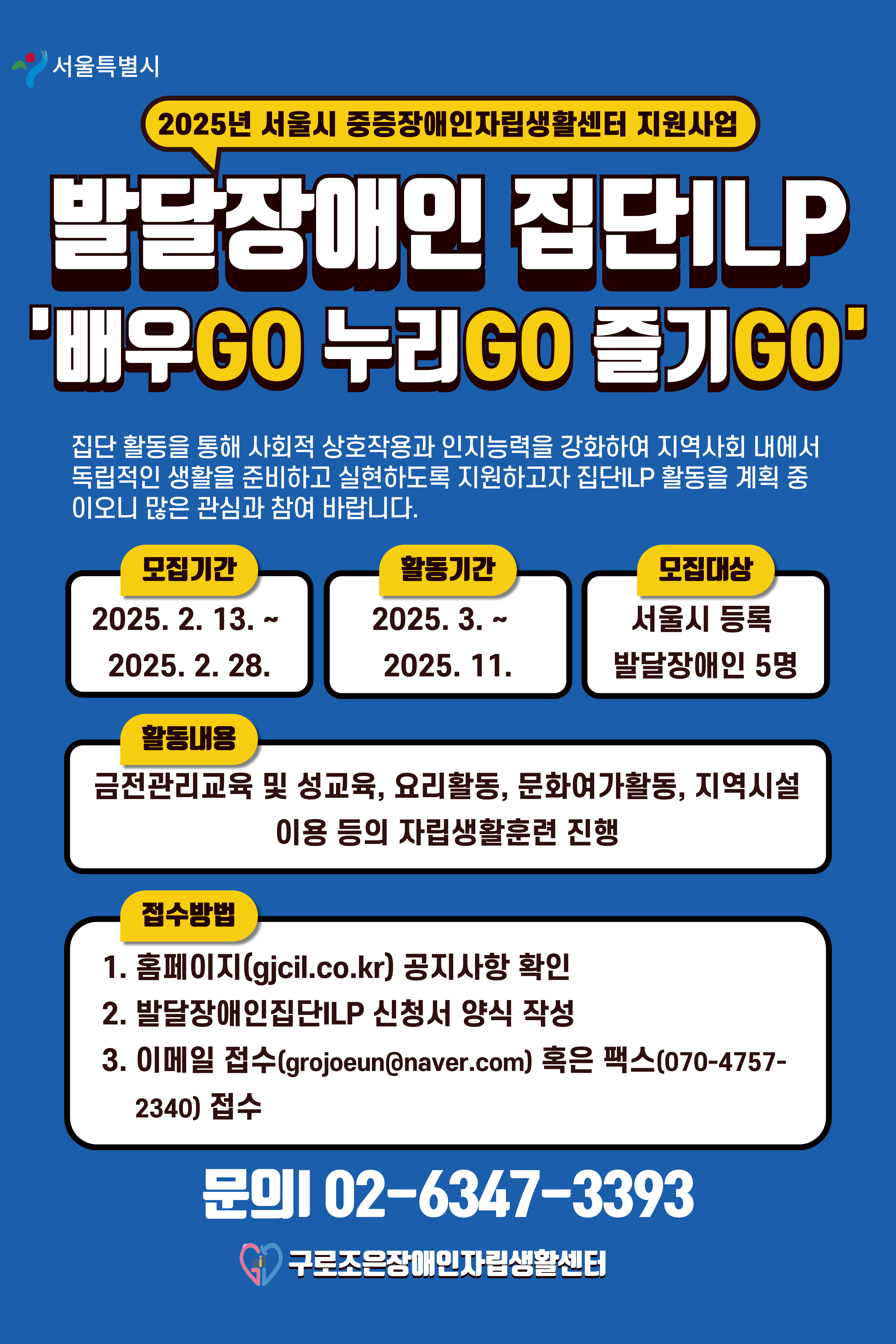 자립의지를 고취하고자 발달장애인 집단 ILP 참가자를 모집합니다.