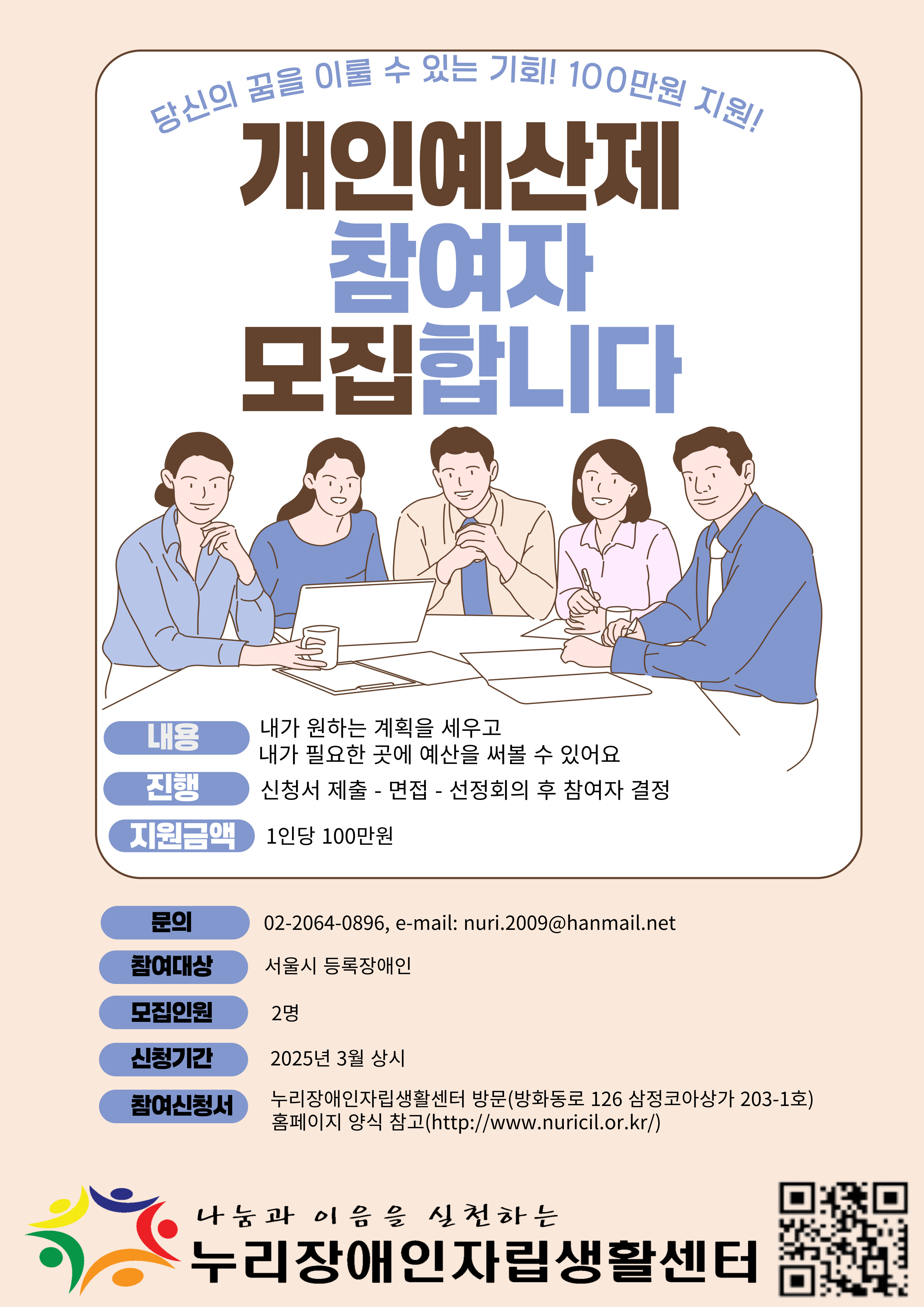 [ 2025 개인별자립지원사업 "개인예산제" 참여자 모집 ]