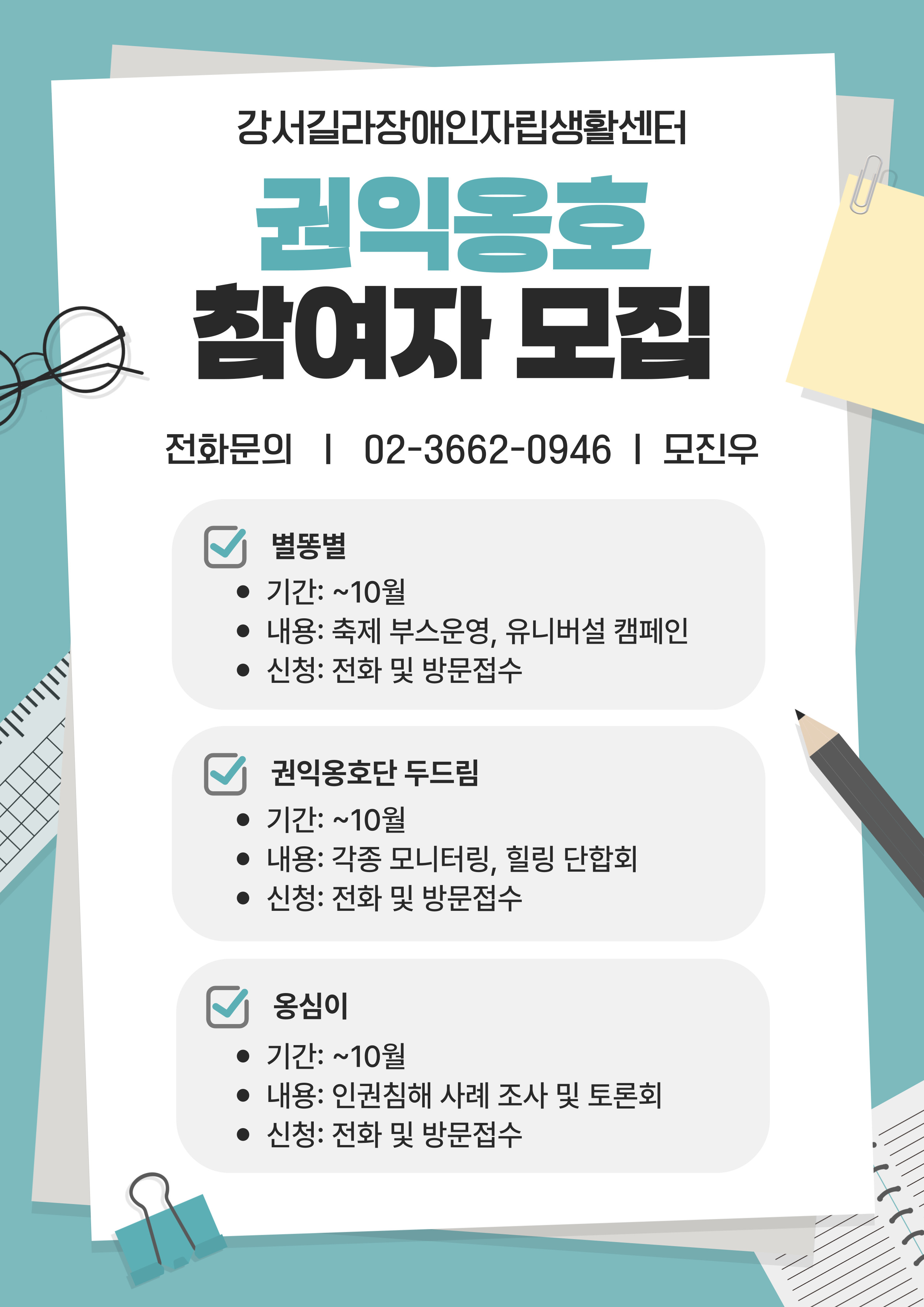 이전글 바로가기 [누리장애인자립생활센터]2025년 지역사회서비스지원-장애인 이동 차량 지원 서비스 모집 홍보합니다 다음글 바로가기 [강서길라장애인자립생활센터] 발달장애인독서자조모임 '도란도란' 참여자 모집