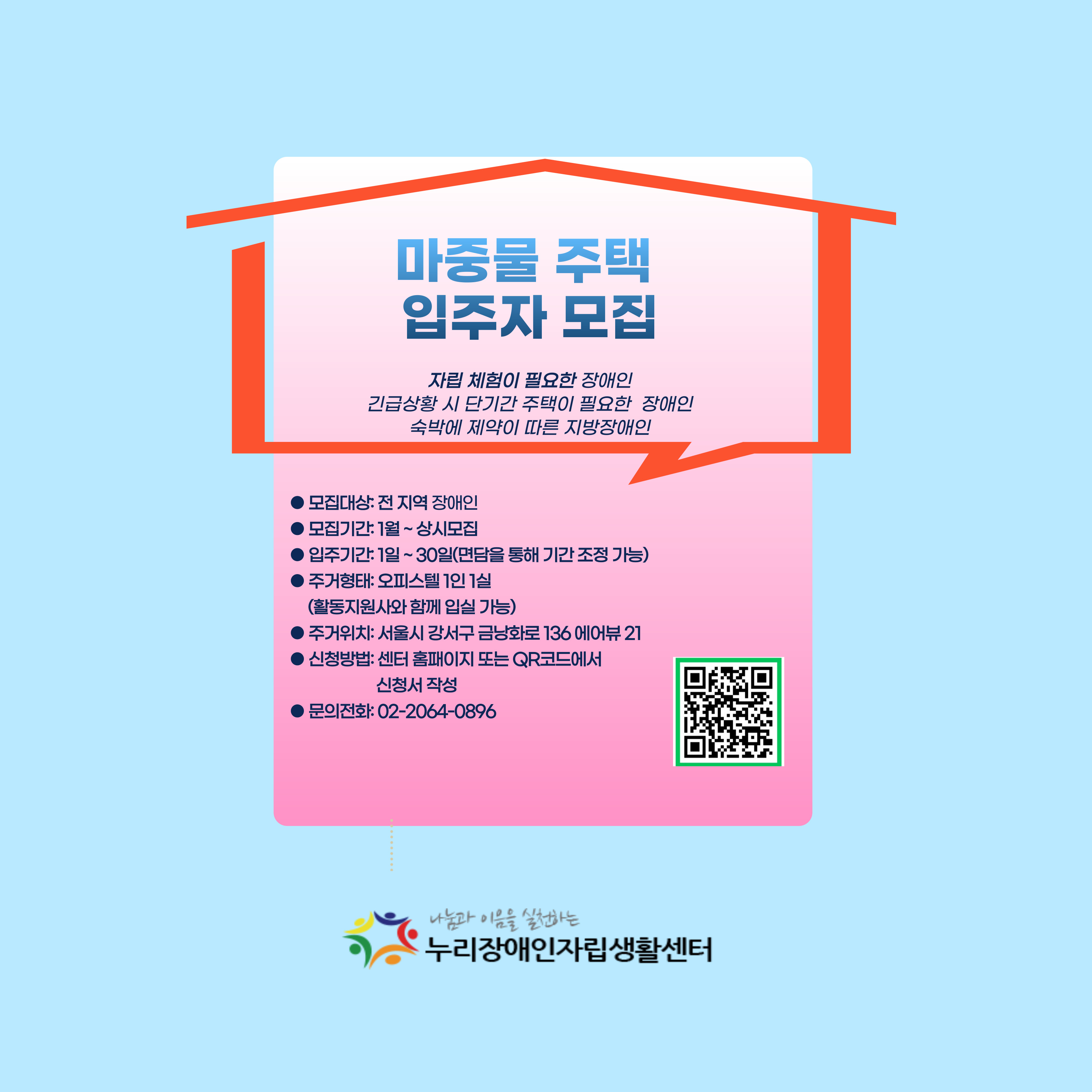 [누리장애인자립생활센터] 2025년 마중물 주택 입주자 모집 안내