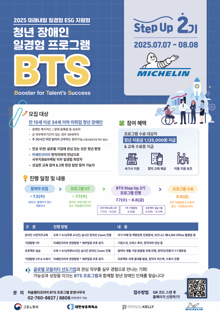 BTS 프로그램 Step Up 2기 참여자 모집 (미쉐린코리아 X 퍼솔켈리코리아)