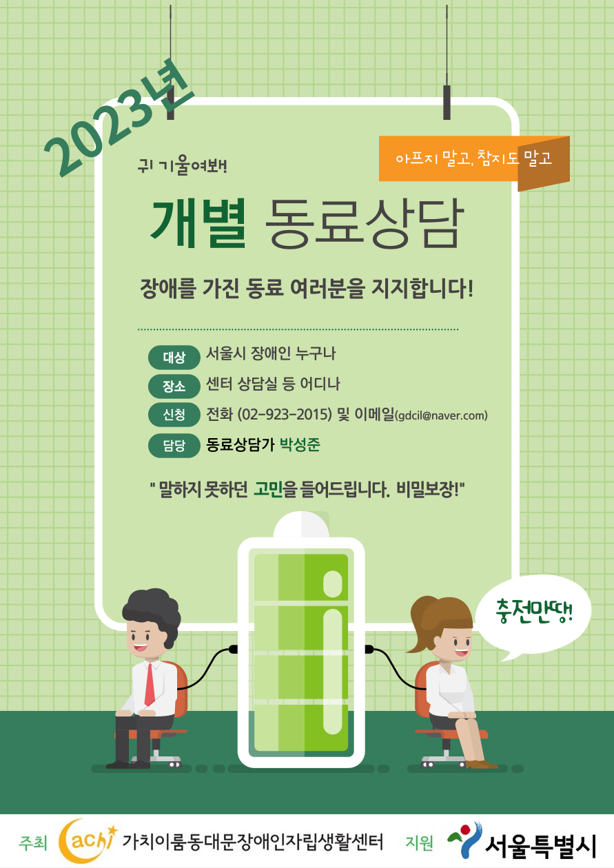 올해에도 가치이룸센터는 서울시 지원으로 ‘귀 기울여 봐’ 개별동료상담을 진행합니다.