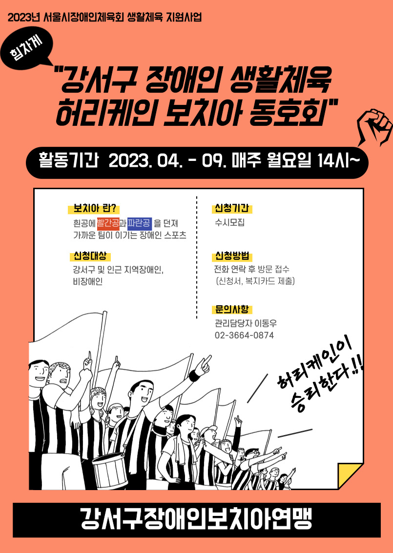 2023년 서울시장애인체육회 생활체육 지원사업 "강서구 장애인 생활체육 허리케인 보치아 동호회" 이용자 모집