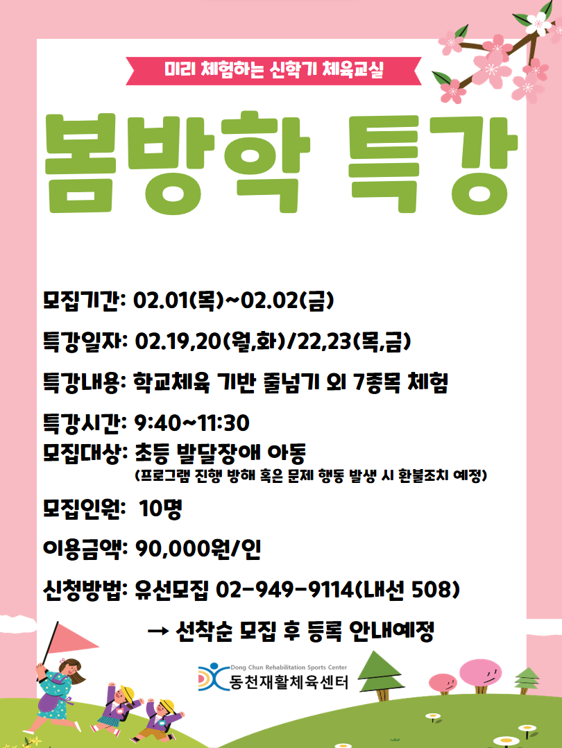 봄방학을 맞이하여 학교체육을 기반으로 한 신체활동 프로그램을 준비했습니다.