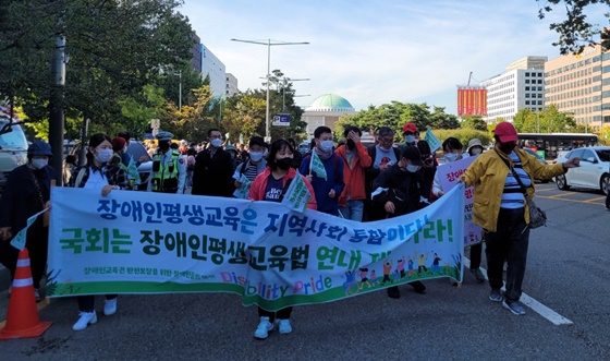 서울 여의도에 모인 장애인들이 노래로, 문화공연으로, 거리 강연으로, 행진으로 ‘장애인 평생교육법’ 연내 제정을 촉구했다.