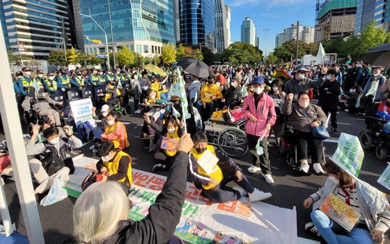 이어 “이제 장애인들이 교육받을 권리가 법으로 제정돼서 교육권이 제대로 실현되는 세상이 오길 바란다”면서 “이번 정기국회에서 장애인 평생교육법이 논의되고 제정될 수 있도록 다함께 투쟁하자”고 외쳤다.