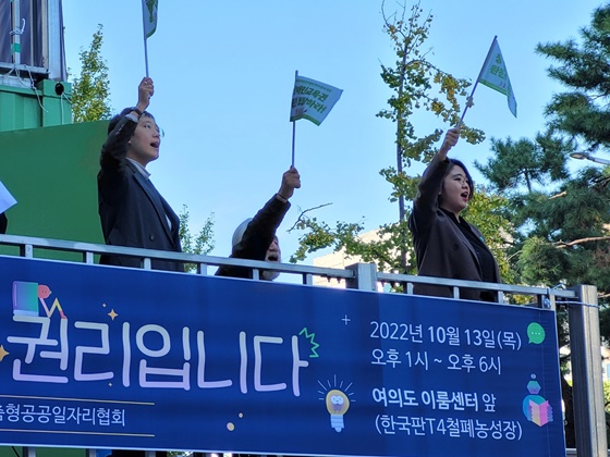 전국장애인야햑협의회(이하 전장야협)와 전국권리중심중증장애인맞춤형공공일자리협의회는 13일 오후 2시 서울 여의도 이룸센터 앞에서 '2022년 장애인평생교육법 제정 페스티벌'을 개최했다.