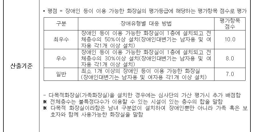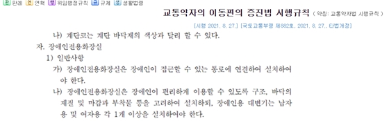 넷째, 1층에는 장애인용 화장실 외에 가족화장실을 설치하여 영유아 동반 가족이 이용할 수 있도록 해야 한다. 마지막으로, 이러한 개선을 위해 장애인등편의법, 교통약자법, BF인증 기준을 개정하여야 한다.