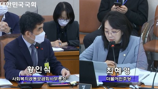 국회 보건복지위원회 최혜영 의원(더불어민주당)이 19일 국회에서 열린 보건복지부 산하기관 국정감사에서 사회복지공동모금회 황인식 사무총장에게 사회복지공동모금회가 2018년부터 장애인학대가 적발된 장애인 거주시설 74곳에 14억여 원을 지원한 점을 질타했다.