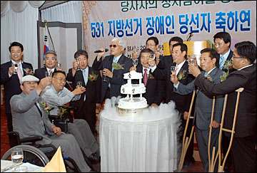정치권도 장애인 당선자들에게 축사의 인사를 전했다. 한나라당 김영선 대표최고위원은 “여러분들은 장애를 갖고 있기 때문에 더 많이 차별의 시정을 요구해야할 사명이 있다”면서 “더 많이 시도하시고, 많이 성취하시고 당당하게 이웃과 즐거움과 괴로움을 함께 하시길 바란다”고 격려했다.