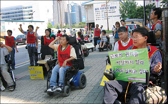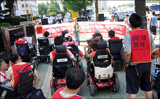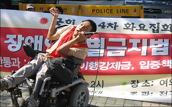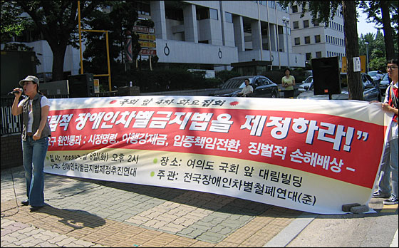 독립적인 장애인차별금지법 제정을 위한 장애인차별금지법제정추진연대의 네번째 화요집회가 8일 오후 서울 여의도 국회의사당 건너편 옛 한나라당 당사 앞에서 개최됐다.