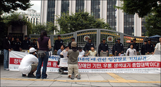 이어 “노무현 정부는 이제라도 장애인을 우롱하는 ‘생색내기 종합대책’을 집어치우고, 시설 확충 전면 폐기와 실질적인 활동보조인제도화 요구에 답하라. 그렇지 않는다면 전 장애민중의 들불 같은 투쟁에 직면하게 될 것”이라고 밝혔다.
