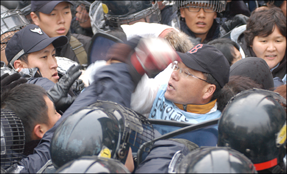 한편 이날 결의대회를 마친 참가자들은 도로 행진을 시도하려고 했지만, 전경들의 원천봉쇄로 실패했다. 전국장애인교육권연대측은 애초 집회 신고 시에 도로 행진을 요청했지만 경찰이 불허한 것으로 전해졌다.