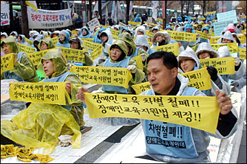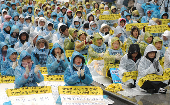 지난 11월 30일 오후 전국에서 모인 장애인부모와 장애인 당사자, 학생, 교사 등은 장애인교육주체들의 분노가 하늘을 찌르는 날이었다. 서울 광화문 세종문화회관 앞에 모인 1천여명의 무리는 ‘국무총리 면담 촉구 및 장애인교육지원법 제정을 위한 장애인교육주체 총력 투쟁 결의대회’를 열어 한명숙 국무총리와의 면담을 재차 촉구했다.