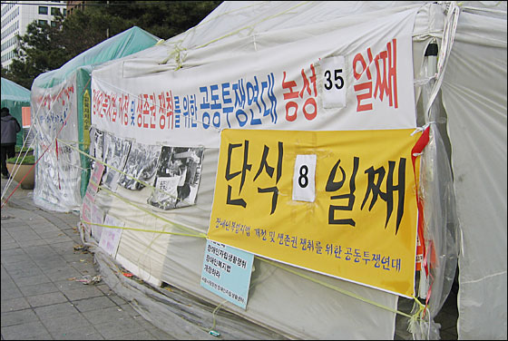 천막농성 35일째, 단식농성 8일째를 맞고 있는 ‘장애인복지법 개정 및 생존권 쟁취를 위한 공동투쟁연대’는 11일 오후 여의도 천막농성장에서 기자회견을 열어 “장애인복지법 개정안이 정기국회 통과는 무산됐지만 이번 임시국회에서 심의될 수 있도록 투쟁을 계속하겠다”고 밝혔다.