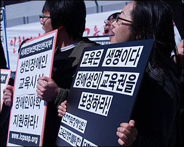 두 번째는 교육공간을 확보해달라는 것. 평생교육법 제 6조의 규정에 준해 공공시설을 장애인평생교육시설로 이용할 수 있도록 협조하고, 시설 보증금, 임대료, 편의시설 설치비 등을 지원하라는 주장이다.