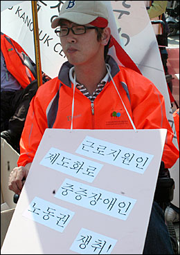 노동부가 2007년도 노동부 사회서비스일자리사업의 일환으로 지난해 10월부터 실시하고 있는 근로지원인서비스 사업은 오는 9월 20일이면 끝이 난다. 하지만 장애인계는 근로지원인서비스가 보건복지가족부가 실시하는 활동보조인서비스와 같이 정부지원사업으로 제도화되기를 기대하고 있다.