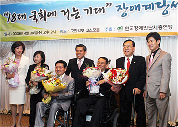 한국장애인단체총연맹과 한국장애인단체총연합회는 지난달 30일 오후 서울 여의도 국민일보 코스모스홀에서 '18대 국회에 거는 기대'라는 주제로 18대 국회에 진출한 장애인계 당선자 축하연을 개최했다.