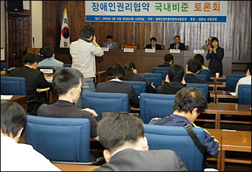 17대 국회 마지막 임시국회인 5월 임시국회에서 처리될 예정인 국제장애인권리협약 비준동의안에 비준 유보 내용이 있는 것으로 알려져 장애인계가 반발하고 있다. 장애인권리협약한국비준연대는 13일 오후 국회도서관 소회의실에서 토론회를 열어 논란이 되고 있는 쟁점에 대해 정부측과 한바탕 토론을 벌였다. 12조 법적 능력, 25조 건강권, 선택의정서 비준 등의 순서로 쟁점을 분석한다.