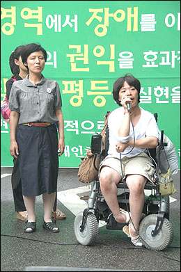 이날 기자회견에 진정인 대표로 참석한 문애린 성북장애인자립생활센터 활동가는 "복지부 앞 집회에서 경찰이 우리의 집회가 불법이라며 강제로 휠체어와 장애인을 분리시켰다"면서 "장애인에게 보장구는 몸과 같은 것인데 함부로 건들거나 몸과 분리시키는 것은 장애인 차별"이라고 지적했다.