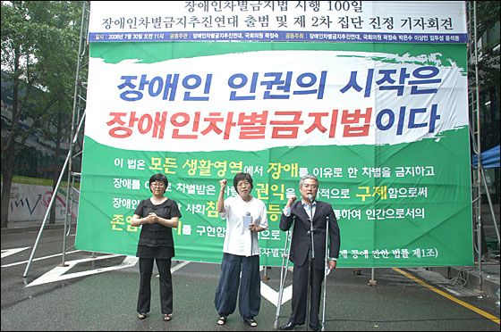 장애인차별금지추진연대(이하 장추련)은 30일 오전 서울 무교동 국가인권위원회 앞에서 출범식과 함께 제2차 장애차별 집단진정에 관한 기자회견을 개최하고, 곧 바로 국가인권위원회에 255건의 진정서를 접수했다.