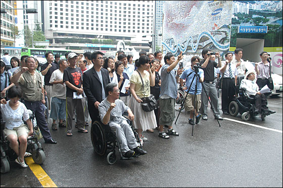 ▲경찰의 집회 강제해산과정에서의 차별=경찰이 집회 등의 강제 해산 과정에서 휠체어를 임의로 조작하거나, 사람과 분리해 배치하거나, 활동보조인과 따로 분리하여 구금하는 경우 등에 관한 진정사건이다. 장차법 4조 6항에 따른 진정이다. 특히 지난 22~23일 보건복지가족부 앞에서 진행한 활동보조인 예산 확충 및 장애인가족지원 확충에 관한 1박2일 투쟁 과정에서 실제로 경찰이 장애인을 강제 해산하는 과정에서 휠체어를 임의로 조작하고 사람과 분리하여 떼어내는 등의 경악치 못할 상황이 벌어졌다. 총 62명이 참여했다.