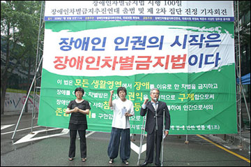 장애인차별금지법이 시행되자마자 의무조항을 임의조항으로 바꾸려는 보건복지가족부의 개정 시도를 저지하기 위해서 장애인계가 국회의원들과 힘을 모은다.