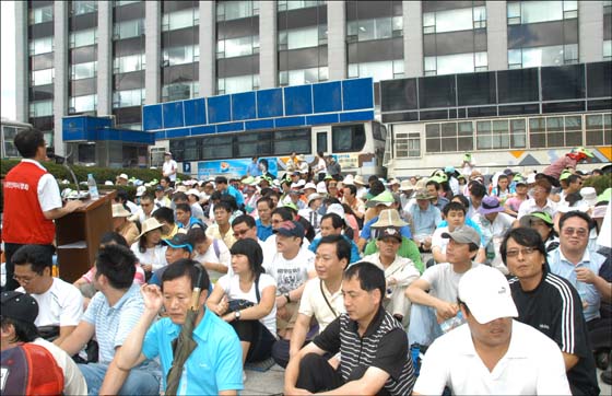 대한안마사협회 송근수 회장이 2일 오후 1시 보건복지가족부 앞에서 시작된 ‘무자격 안마행위 피부관리미용사제도 저지대회’에서 음독, 인근병원으로 후송돼 치료를 받고 있다.