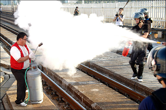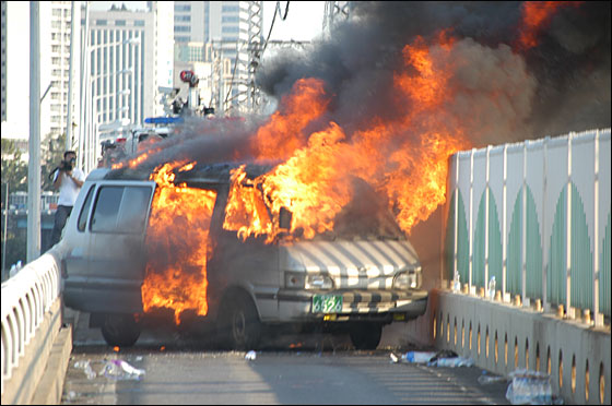 대한안마사협회 소속 시각장애인 안마사들은 경찰이 진압하려하자 자신들이 타고온 차량에 불을 붙여 항의했으며 선로에 뛰어들어 가스통에 불을 붙이고 경찰과 대치하기도 했다. 경찰이 분말소화기를 뿌려 진압하자 시각장애인 안마사 2명은 한강물로 뛰어들기도 했다. 긴박했던 시위 현장을 카메라에 담았다.