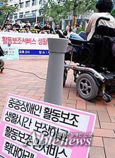 ▲서비스 이용의 제한=개인신고시설, 미신고시설, 공동생활가정에 거주하는 장애인이나 주단기보호시설을 이용하는 장애인은 시설 내에서 활동보조서비스를 이용할 수 없지만 외출하거나 이동서비스가 필요한 경우에는 활동보조서비스를 이용할 수 있다.