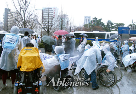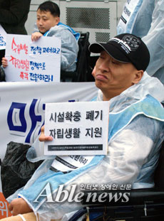 “보건복지가족부는 장애인시설 확충 계획을 폐기하고 장애인시설 신축비를 장애인의 자립생활 지원비로 전환하라.”