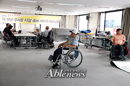지난 6월 4일 S시설에서 스스로 퇴소해 서울 대학로 마로니에 공원에서 노숙농성을 벌여온 장애인 8명은 면담이 열리기 직전인 6일 오후 1시께부터 국가인권위원회 11층 배움터를 점거하고 농성을 벌이고 있다.