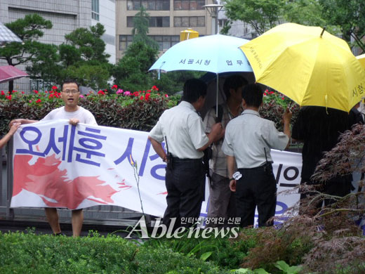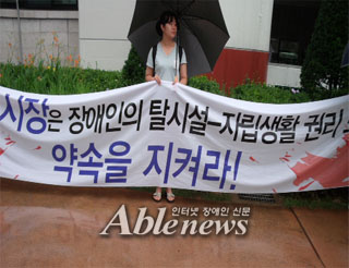 하지만 우리가 제기하는 문제에 서울시가 중앙정부 핑계를 대며 계속적으로 서울시가 '장애인자립주택'의 시범사업 조차도 불가능하다는 입장을 보인다면 어떻게 대화가 가능하겠습니까.