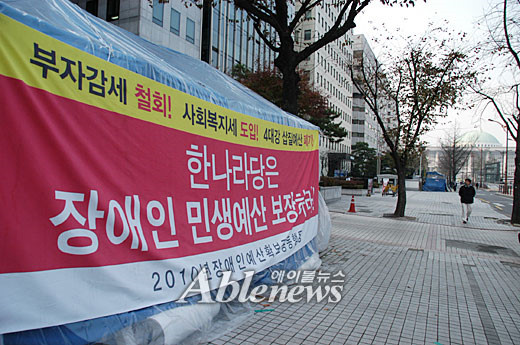 장애인의 요구를 명확하다. 이 대통령이 공약을 지키기 위해서 장애인예산은 확보하기 위한 중장기적 방안을 내놓아야한다는 것이다. 특히 올해 예산안의 경우 1조 4,000억원 증액해야할 것이라고 입을 모은다. 이러한 장애인들의 투쟁에는 민주당 박은수, 민주노동당 곽정숙 의원이 함께 하고 있다.