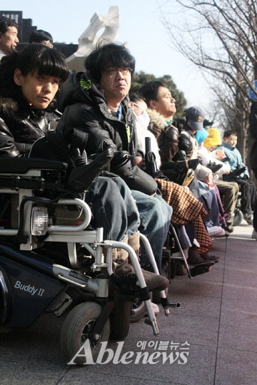 이어 박 회장은 "어제에 이어 오늘도 복지부 앞에 모였다. 우리의 뜻이 수용될 때까지 장애인들의 활동은 계속될 것"이라고 말했다.