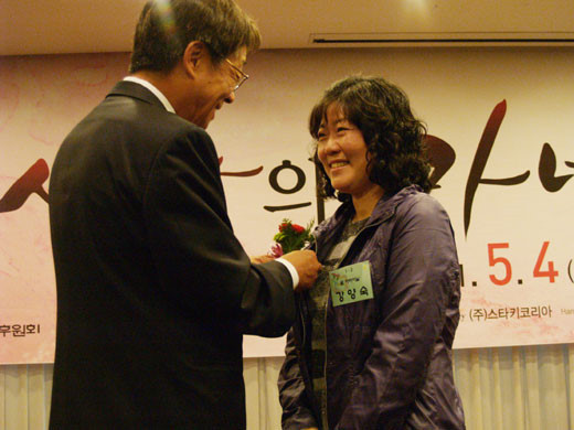 “현재 우리 아들은 중학교 2학년에 재학 중이에요. 지적장애를 갖고 있죠. 이 행사에 처음 참석하는 거라 기분이 새롭네요. 단순히 참석하는데 의의를 두려고 했는데 학생이 생각지도 못한 편지를 건네주네요. 오늘 처음 만났는데 내 자식 같은 아이가 이렇게 카네이션을 달아주니 너무 좋네요. 내 자식이 달아주는 것처럼 행복해요.”