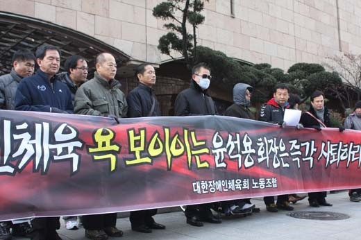 한편 대한장애인체육회노동조합, 윤석용회장비리규명대책위원회, 경기단체사무국연맹으로 구성된 연대는 이사회가 열리기 전 소공동 롯데호텔 앞에서 기자회견을 가졌다.