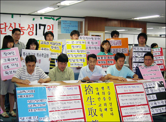 한편 현재 단식농성 중인 경남장애인부모회 윤종술 회장과 장애인교육권연대 도경만 집행위원장은 단식이 장기화됨에 따라 몸무게가 10kg이상 줄어드는 등 건강이 매우 염려되고 있는 상황이다.