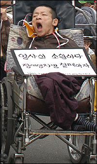 이어 ‘40년 동안 집안에 갇혀 살다 최근 밖으로 나오면서 세상사는 맛을 알게 됐다’는 이종일씨가 결의문을 통해 밝힌 요구는 ‘장애인도 자립하고 싶다’는 것.