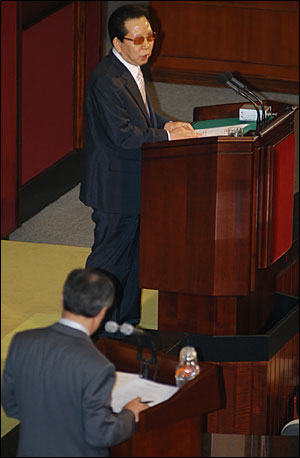 17대 국회에 들어와 첫 대정부질의를 하게 된 정 의원은 비서관의 도움을 받아 연단에 오른 후 먼저 시각장애를 감안해 50%의 추가 시간을 준 것에 대해 국회의원장에게 감사의 표현을 했다.