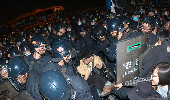 경찰은 “폭력을 행사하면 연행하겠다. 평화시위를 하겠다고 신고해놓고, 경찰에게 폭력을 행사하고 도로를 점거하는 등 불법 행위를 계속 진행할 경우 연행하겠다. 집행부는 참석자들에게 자제하도록 조치하라”며 경고. 반면 420공동투쟁단은 “폭력경찰은 물러나라”며 항의하고 있는 상황. 마찰 지속될 듯.