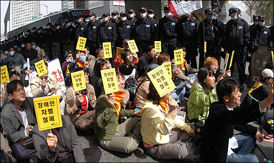 장애인의 날의 두 표정이 오늘도 뻔히 예상되고 있다. 오전 서울 올림픽공원에서는 정부 공식 기념행사가 열리며, 오후 서울 도심을 비롯한 주요 도시에서는 장애인차별철폐투쟁 결의대회가 열리게 된다. 한쪽에서는 즐거워하고, 한쪽에서는 괴로워한다. 언제까지 장애인의 날의 이질적인 두 풍경은 계속될 것인가?
