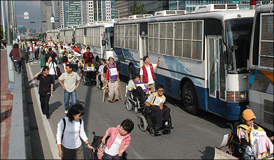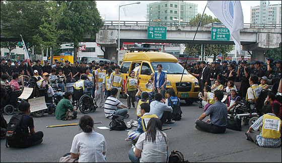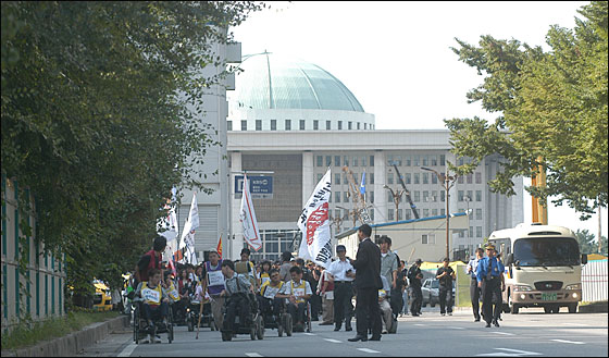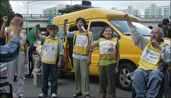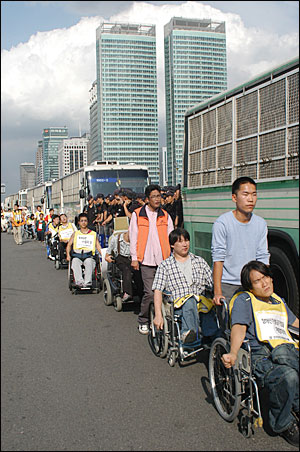 이날 결의대회에는 100여명의 장애인들밖에 참석하지 않았지만 그 어느 장애인관련 집회보다 뜨겁게 진행됐다. 이날 참가자들은 오후 1시부터 3시까지 연좌집회를 개최한 이후 KBS 정문앞-서울교-영등포 민주노총에 이르는 도로행진을 벌였다.