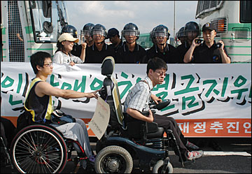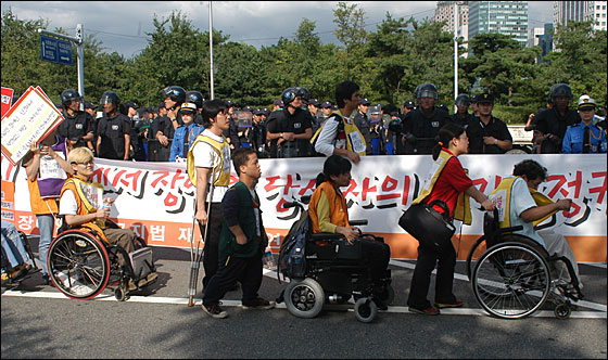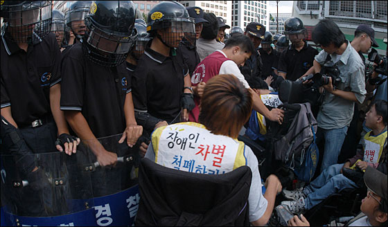 한편 이날 대회 내내 좀더 널리 시민들에게 장차법 제정의 중요성을 알리려는 장애인들과 경찰들과의 신경전이 계속됐다. 산발적으로 몸싸움이 몇 차례 일어났지만 불상사는 발생하지 않았다. 장추련측은 도로행진 후 서울 영등포 민주노총 건물 앞에서 마무리집회를 갖고 대회를 마무리했다.