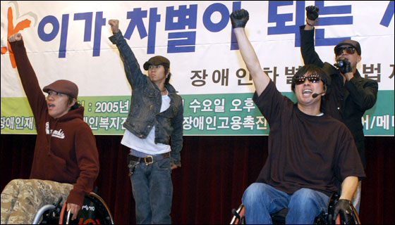 “지난 5년여의 시간을 되돌아보니 정말 감격스럽다. 우리는 장애인차별금지법 제정을 위해 끝까지 갈 것이다. 오늘 이 자리는 우리의 의지를 하늘에 고하고, 땅에 고하고, 온 인류에 고하는 자리이다.”