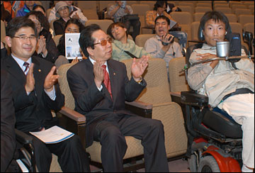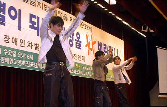 ‘내 사랑 송이’ ‘소외된 외침’을 부르며 휠체어댄스를 선보인 클론의 강원래씨는 “장애인 관객 앞에 서는 것은 이번이 두 번째”라면서 “귀중한 자리에 서게 돼서 영광”이라고 말했다.