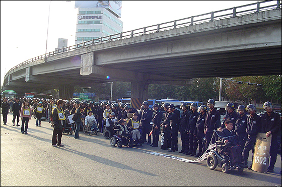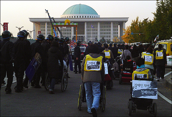 특히 민주노동당 장애인위원회(준) 박인용 준비위원장은 “대통령이 장애인차별금지법을 제정하겠다고 약속했다. 하지만 현재 장차법이 국회에 올라가 있음에도 무관심한 상황”이라며 “국민을 위해 일한다는 여당이 법 제정 공약을 내팽개치는 것은 있을 수 없는 일이다. 우리는 이러한 여당의 태도에 항의하고 성실한 자세를 촉구할 수밖에 없다”고 말했다.