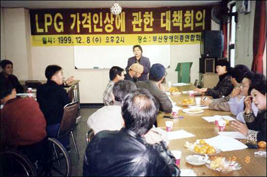 한국장총 등 전국장애인단체에서는 LPG가격인상을 반대한다는 공문을 관계기관에 발송하는 등 백방으로 노력하였고 'L피지인상! 장애인P눈물! 당국은 아는G'라는 스티커를 붙이고 1년 가까이 투쟁과 시위를 계속하였으나 아무 소용이 없었다. 2000년 9월 7일 'LPG정책반대 범장애인궐기대회'가 서울역 광장에서 열렸다. 성난 장애인들의 불만과 분노가 폭발하였던 것이다.