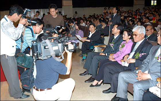 19일 오후 서울 잠실동 재향군인회관 강당에서 열린 이날 행사에서 주최측은 한나라당 오세훈 서울시장 후보의 격려사를 듣기에 앞서 “오세훈 후보를 위한 특별한 선물을 준비했다”면서 오세훈 후보를 노골적으로 지지하는 내용을 담은 로고송을 약 2~3분간 스피커를 통해 방송했다.